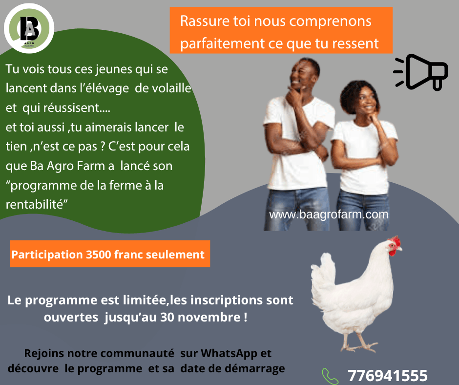 Veut -tu démarrer ton élevage de volaille ,rejoignez notre programme